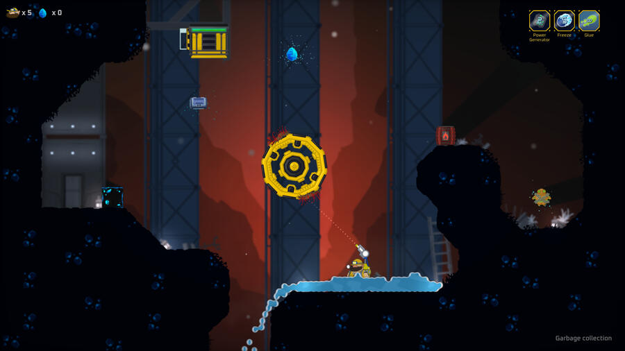 "Variety cousine" - This level is a good example of suggesting many solutions for the same problem. In order to get to the right side you can use gadgets to either make a big jump sideways, a high jump from underneath, or try to push the button.