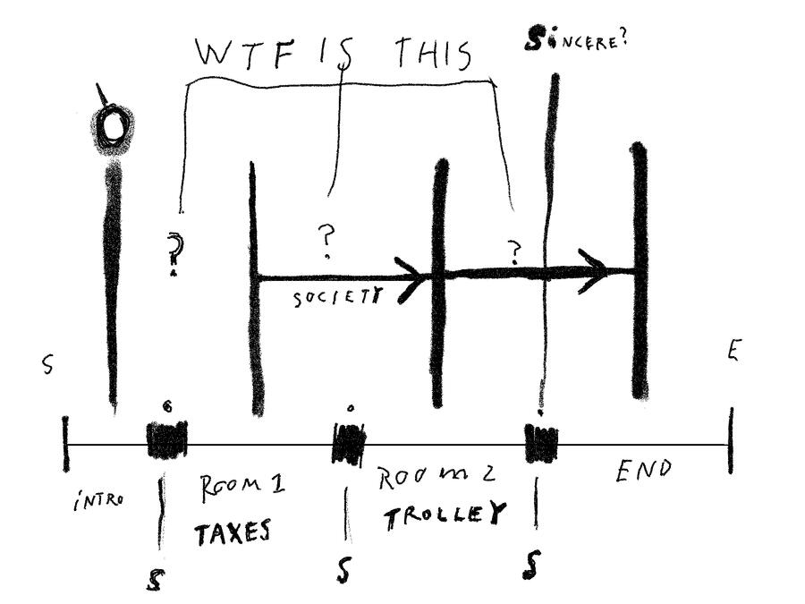The Citizen is a first person narrative comedy game (absurdist narrator-fetish) about “how to deal with important subjects without saying anything”.